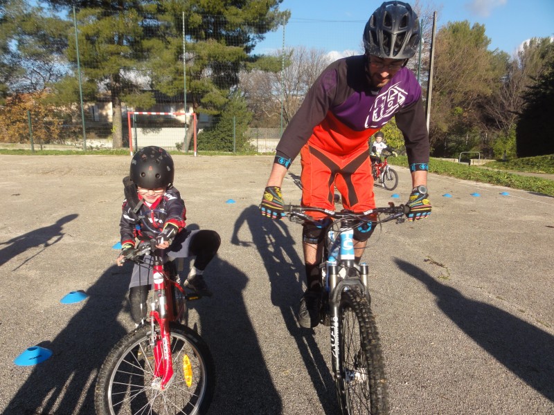 pendant ce temps là CRISTOL, MEHDI et PACO sont partis se faire une petite virée à la vigie de CARNOUX, à leur arrivée, nous étions en train de finir un match endiablé de ballon vélo, pour finir ce cours en apothéose, nous avons fini par un dual slalom en relais voilà pour le samedi.