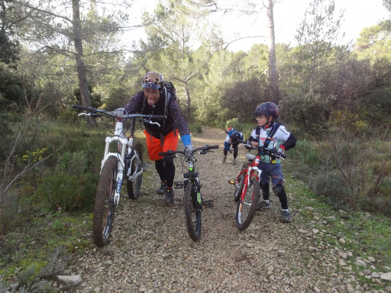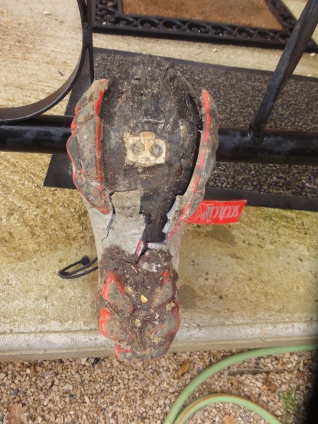 tout ces minos, qui découvraient un nouveau spot. Puis vers la fin du cours, les grands et les petits se sont regroupés pour finir ensemble jusqu’au parking, tout s’est bien passé, pas de bobo, à si j’oubliais, un drame c’est produit, ma chaussure droite de vtt s’est désintégrée après 17 ans de bons et loyaux services, nous a quitté (voir photos)
