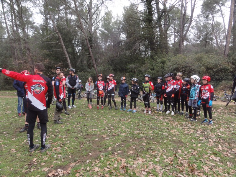 Donc je leur explique le programme, à l'origine on devait faire un VET’ATHLON mais je l’ai transformé en VET’BI’ATHLON, ce qui veut dire (course à pied, tir de ballon dans une cible et VTT), bon pas simple à expliquer en langage adulte alors à des enfants je ne vous explique pas, faut trouver les mots pour éviter trop de questions donc pour gagner du temps je laisse à Eric le plaisir de leur expliquer les règles du jeux, bref je délègue.