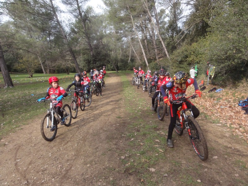 On commence donc par lancer la première course, les grands partent pour 300m de course à pied et 5,2 km de VTT soit 2 tours du circuit VTT et à chaque tours ils doivent passer dans le stand de tir au ballon pour tirer dans une cible, s’ils réussissent ils peuvent repartir, sinon ils doivent faire un petit tour dans le slalom que je leur ai tracé comme dans un vrai BIATHLON sauf que là on a pas de carabine et on n’a pas de skis aux pieds.